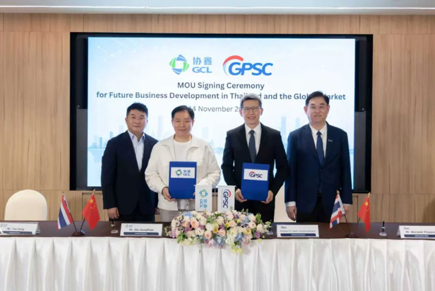 El 14 de noviembre, el presidente del Grupo GCL, Zhu Gongshan, encabezó una delegación a Bangkok, Tailandia, para celebrar una reunión de alto nivel con Global Power Synergy Public Company Limited (GPSC). Durante la visita, ambas empresas firmaron un acuerdo de cooperación, lo que marca un paso importante en los esfuerzos de GCL por expandir su presencia global y profundizar la colaboración energética en el sudeste asiático.
